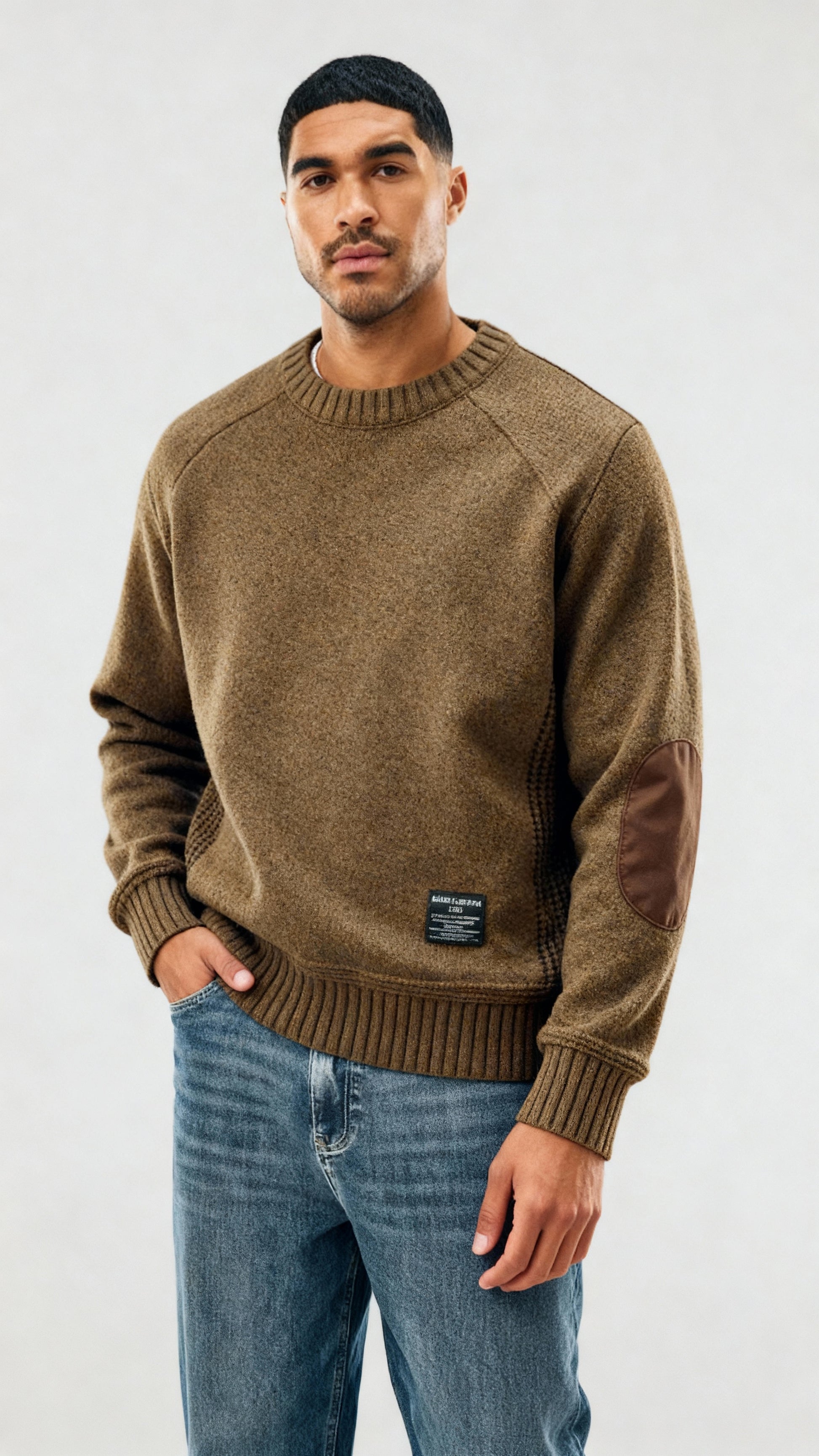 Men's Crew Neck Elbow Patch Sweater – Sutton James