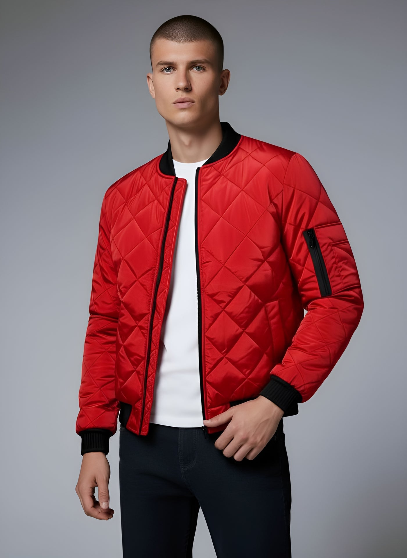 Elevate Your Outerwear Game with Our Diamond Quilted Bomber Jacket